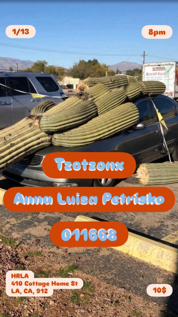 Anna Luisa Petrisko, 011668, Tzotzonx January 13 8:00 pm – 10:30 pm Add to calendar Google Calendar iCalendar Outlook 365 Outlook Live