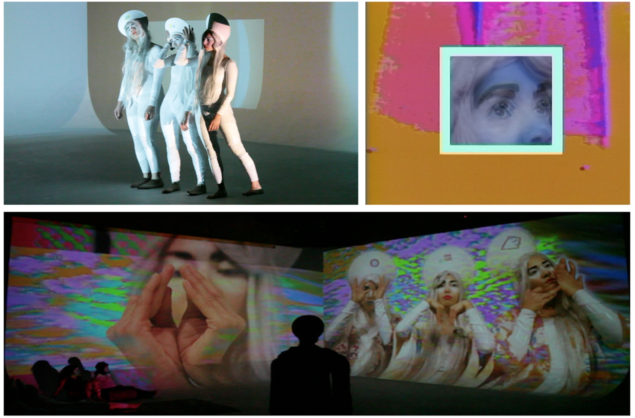 OLINGLINGO is a ceremony that invokes our ancestral memories from past and future, earth and outer-space. In a total submergence of song, movement, video and language, the OLINGLINGOANS move ecstatically through prismatic portals, conjuring ancestoric magic to heal and give thanks. In an embodied collective reminiscence, we remember we are all baby ancients ruled by ancient love. This is our decolonizing spaceship. We are all spaceships. We are all OLINGLINGO.