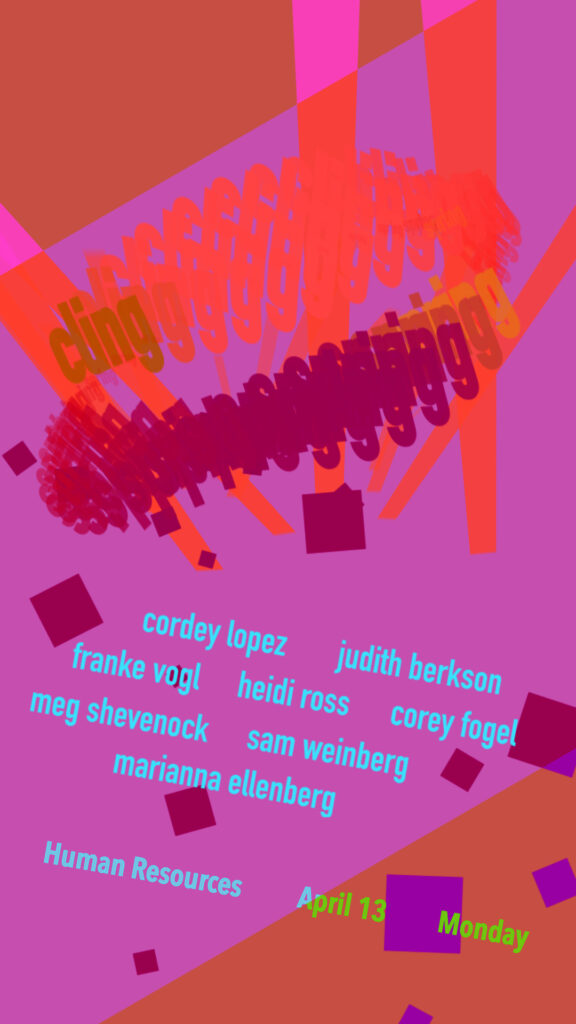 SPRINGCLING is the latest experiment in curation by local percussionist-artist Corey Fogel, challenging & augmenting what fits in a gallery, on a “music program”, within an acoustic setting, and at an event. “Salon” may best describe this happening that marries artists from all corners of the country; of Corey’s creative friend circle; of the media sphere. Proceeding these prepositions is a preposterously proposed presentation of presumably preferred praxes. P’rhaps we’ll see you there!